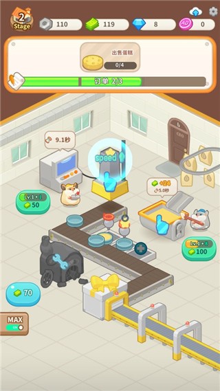 6、工厂风格可以自由创造,让更多的仓鼠员工加入进来,为你做蛋糕和财富。