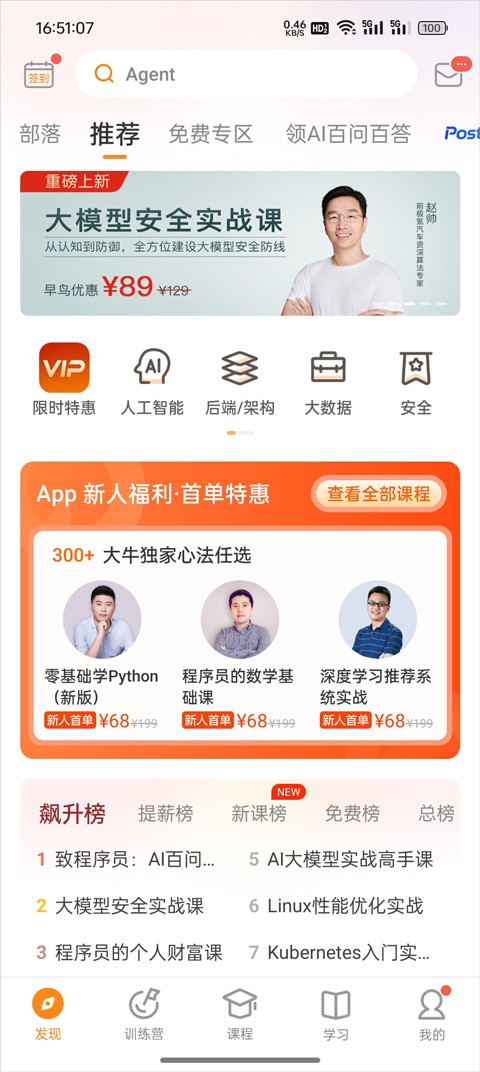 极客时间是一款学习软件,专门给IT专业用户打造,可以看到各种各样的科技数据,软件有系统课程、技术资讯、交流社区等多个板块,还有线上讲座、录播课程、互动问答等内容,和精品专栏、极客新闻、热点专题等,提供一站式数字化技术学习平台,软件还会根据你的岗位给你定制学习路径,200+热门课程等你学,高效的管理系统,还有专业的学习服务。